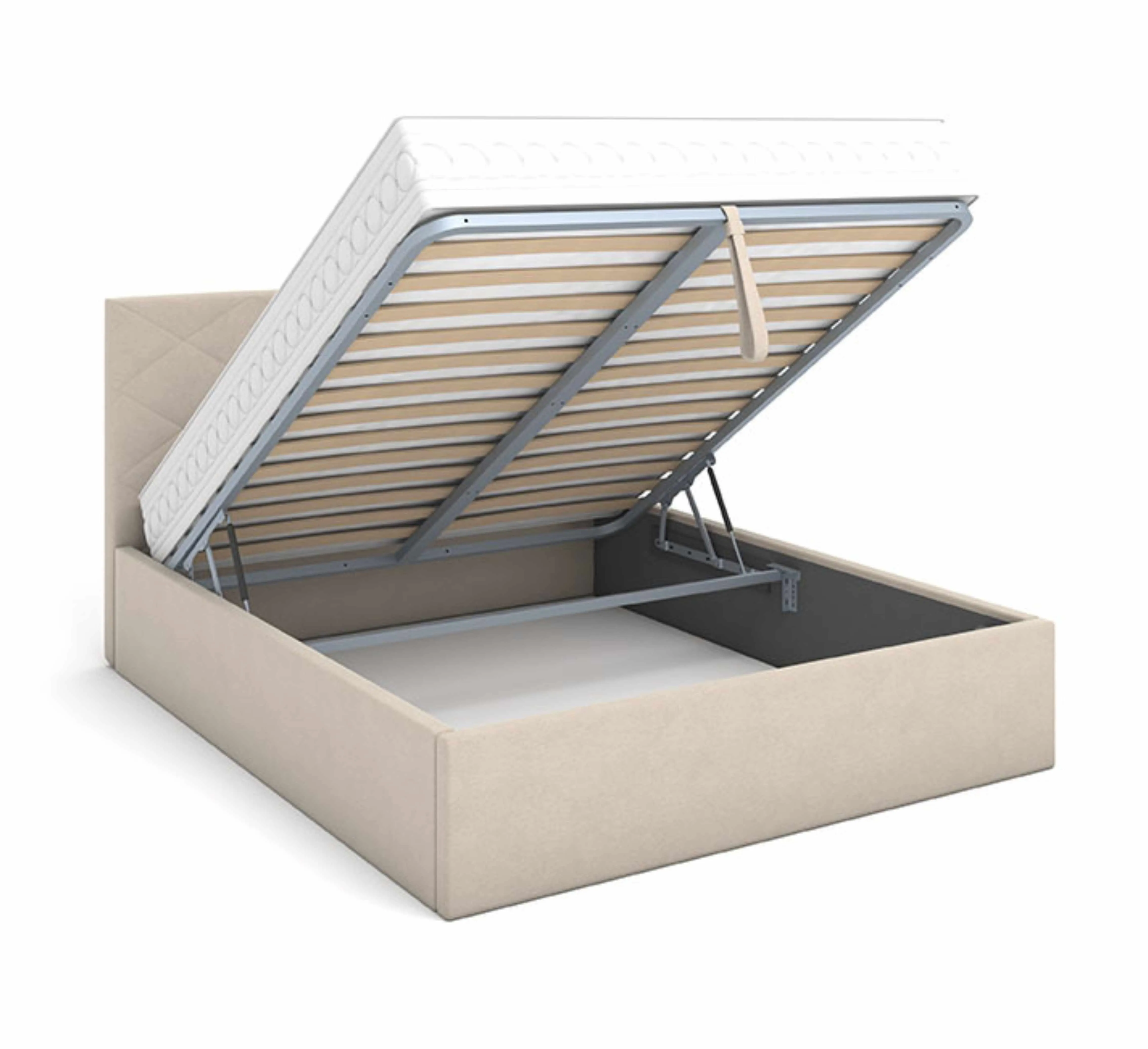 Механизм подъема с газлифтом (усилие 1150 N) обеспечивает подъем основания спального места на 60° для максимально комфортного доступа к бельевому ящику