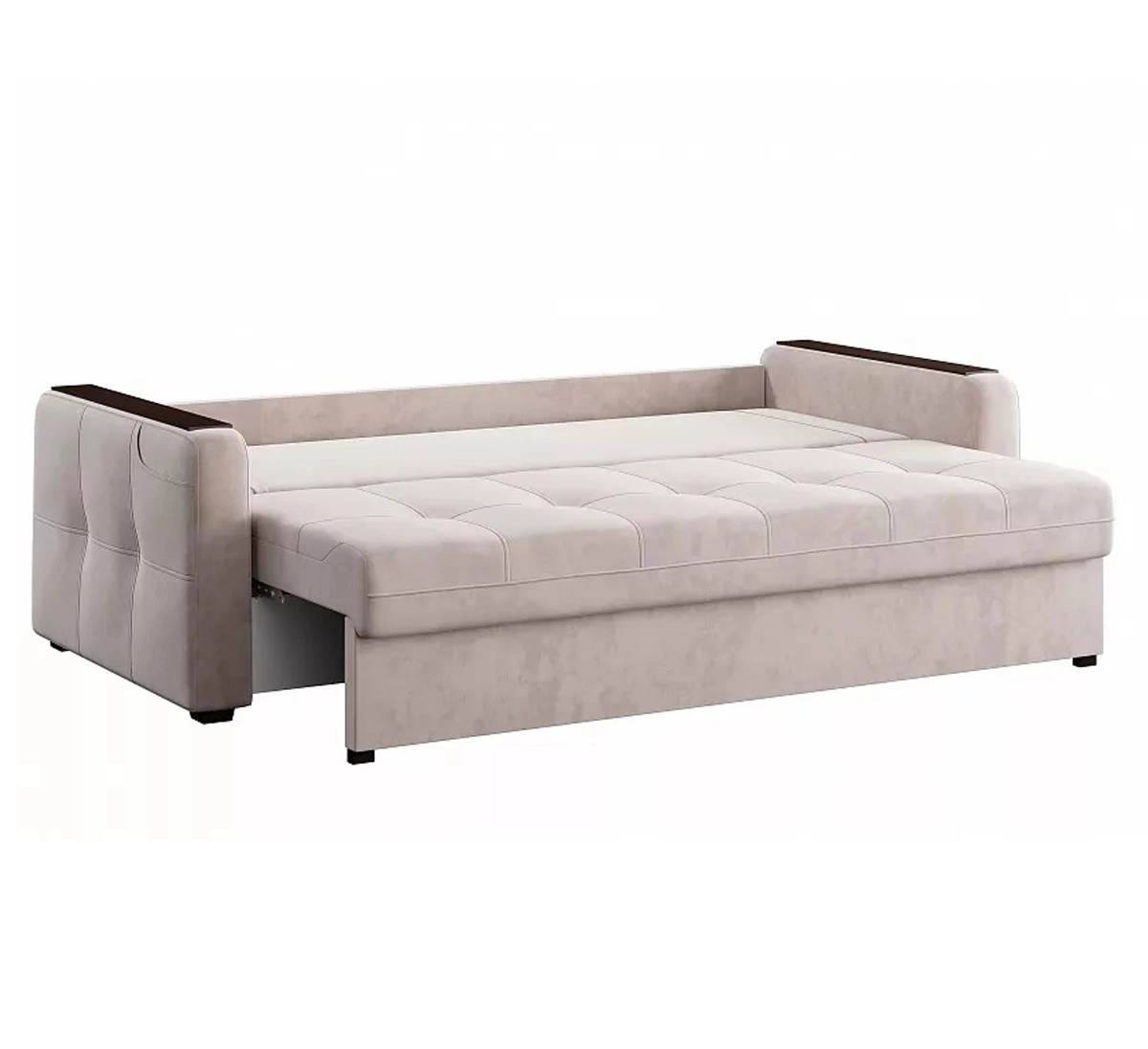 Механизм раскладывания "пантограф" не требует отодвигания дивана от стены и работает из стационарного положения дивана. Благодаря наличию накладок на подлокотники можно положить смартфон или поставить чашку, что обеспечивает полезную рабочую поверхность. В комплекте к дивану можно заказать кресло-кровать или кресло с бельевым ящиком.