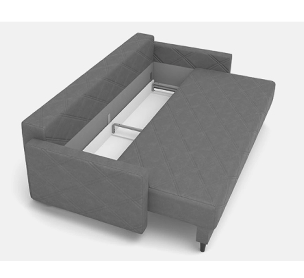 Прямой диван Лондон. Российское производство. Механизм трансформации — выдвижная еврокнижка: сиденье легко выдвигается вперед на роликовых направляющих. Раскладка занимает считанные секунды, а готовое спальное место получается просторным и удобным — 146×200 см. Внутри дивана независимый пружинный блок, материал Skyfiber —высокая упругость, не дает усадку, а дополнительная обкладка из пенополиуретана создаёт оптимальный уровень жесткости.
