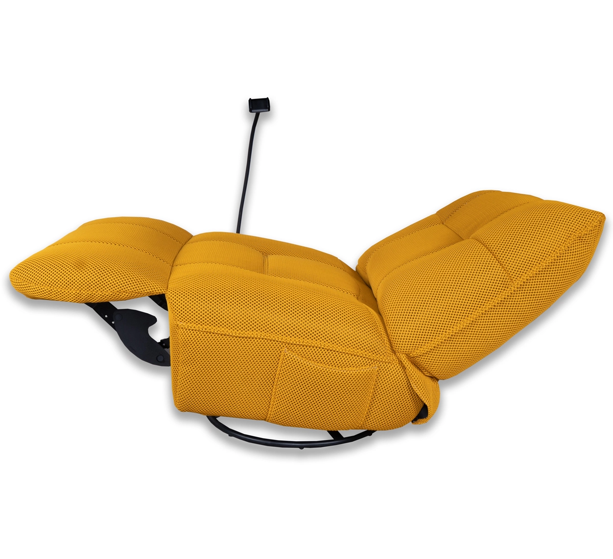 Поворотный механизм, механизм качания, выдвигающаяся подставка для ног, встроенный держатель для мобильных устройств, боковой карман, режимы раскладки - положение "сидя", положение "полулежа", положение «лёжа». Защита напольного покрытия.