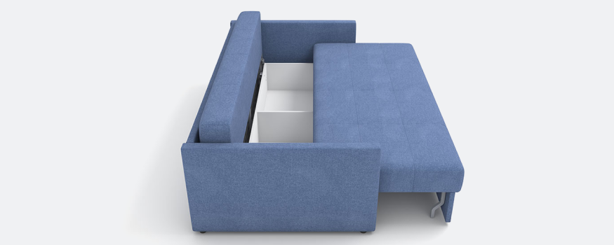 Идеально ровное спальное место. Вместительный бельевой ящик под сиденьем дает возможность хранить в нем все принадлежности для сна и отдыха.