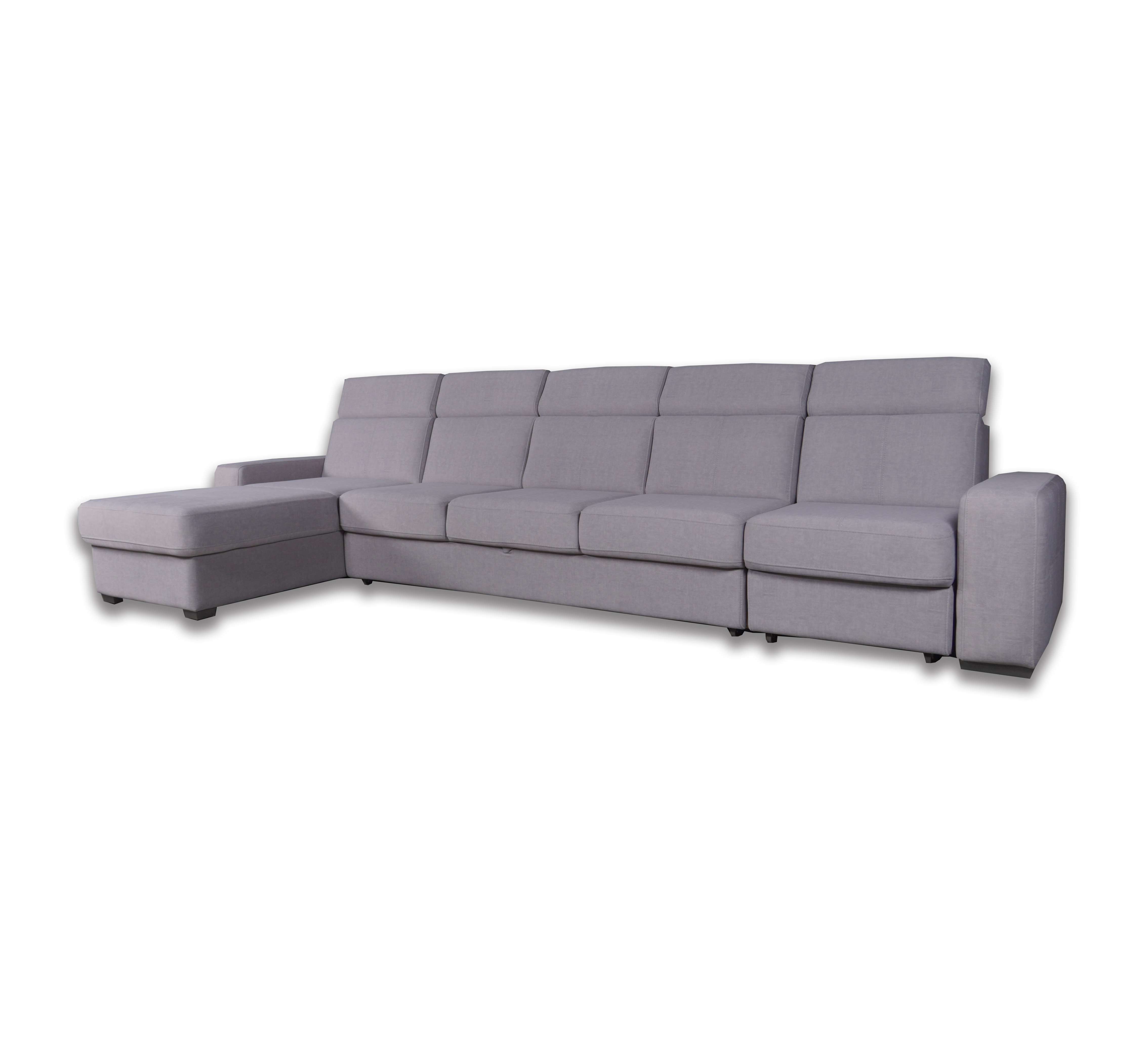 Модули можно менять местами, регулируемые подголовники (6 позиций), ламинированная ниша для белья, обивка без "пальчикового" эффекта, легко чистится, деревянные подлокотники