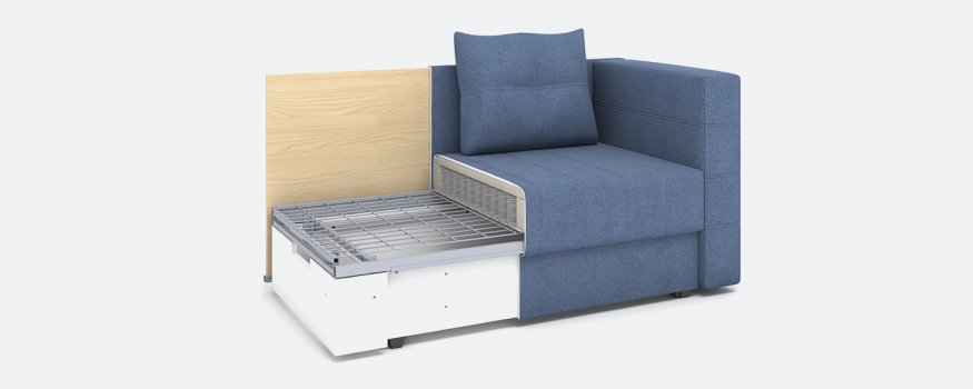 Наличие универсального направления трансформации механизма позволяет в любой момент изменить внешний вид кушетки.